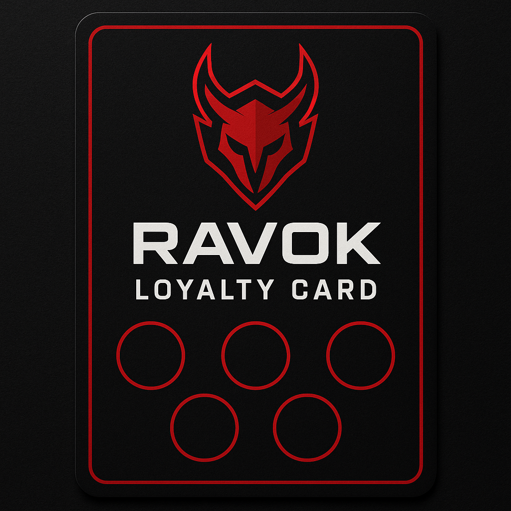 JOIN RAVOK OR BECOME A FAN OF RAVOK AND SIGN UP TO OUR LOYALTY CARDS WHERE EVERY TIME YOU PURCHASE YOU EARN A STAMP AFTER 5 STAMPS YOU GET A 30% DISCOUNT ON YOUR NEXT PURCHASE AND SHIPPING COVERED BY US AND A COUPLE OF EXTRA FREEBIES.